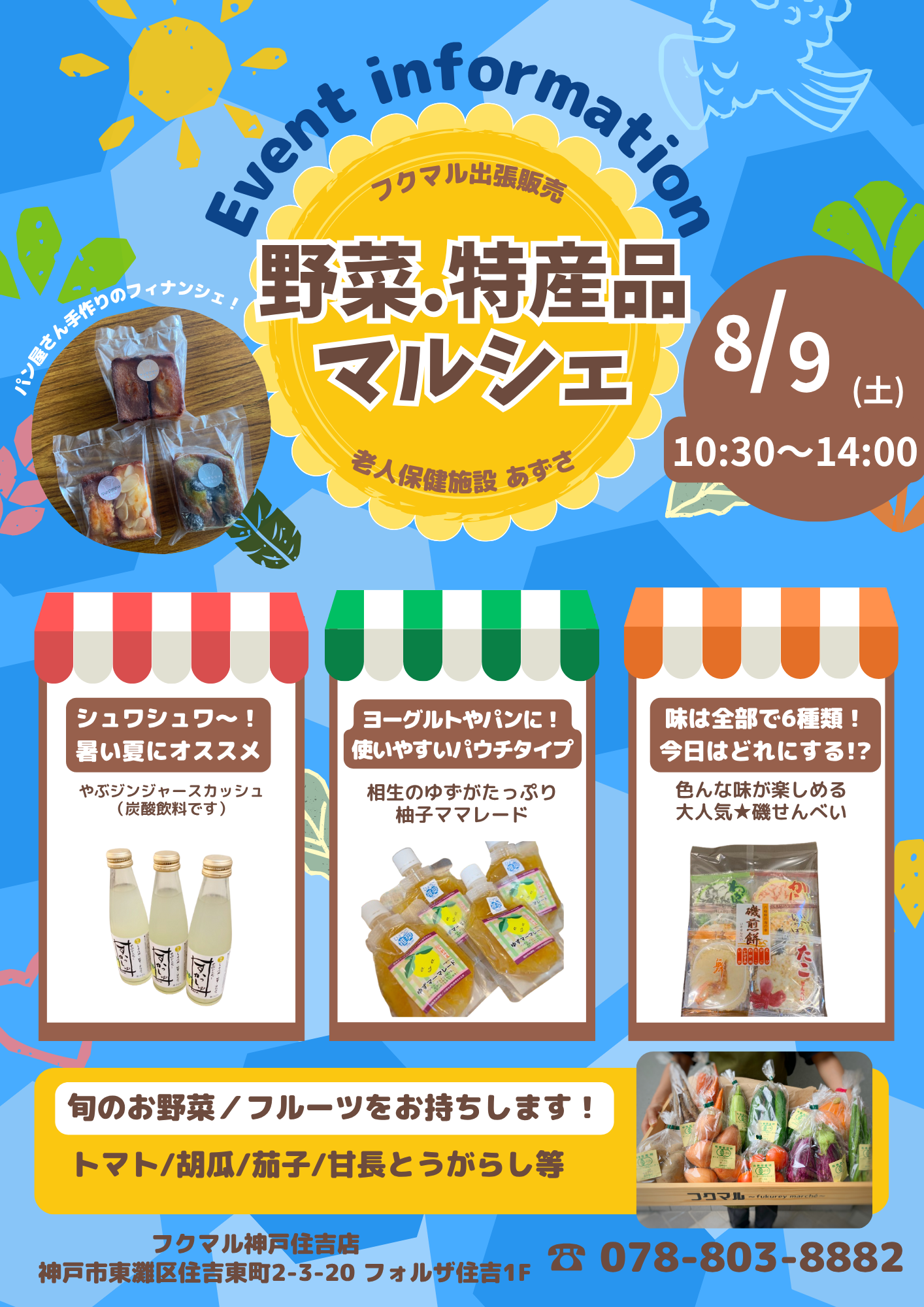 8月9日(土)10時30分より、野菜・特産品マルシェを開催いたします!