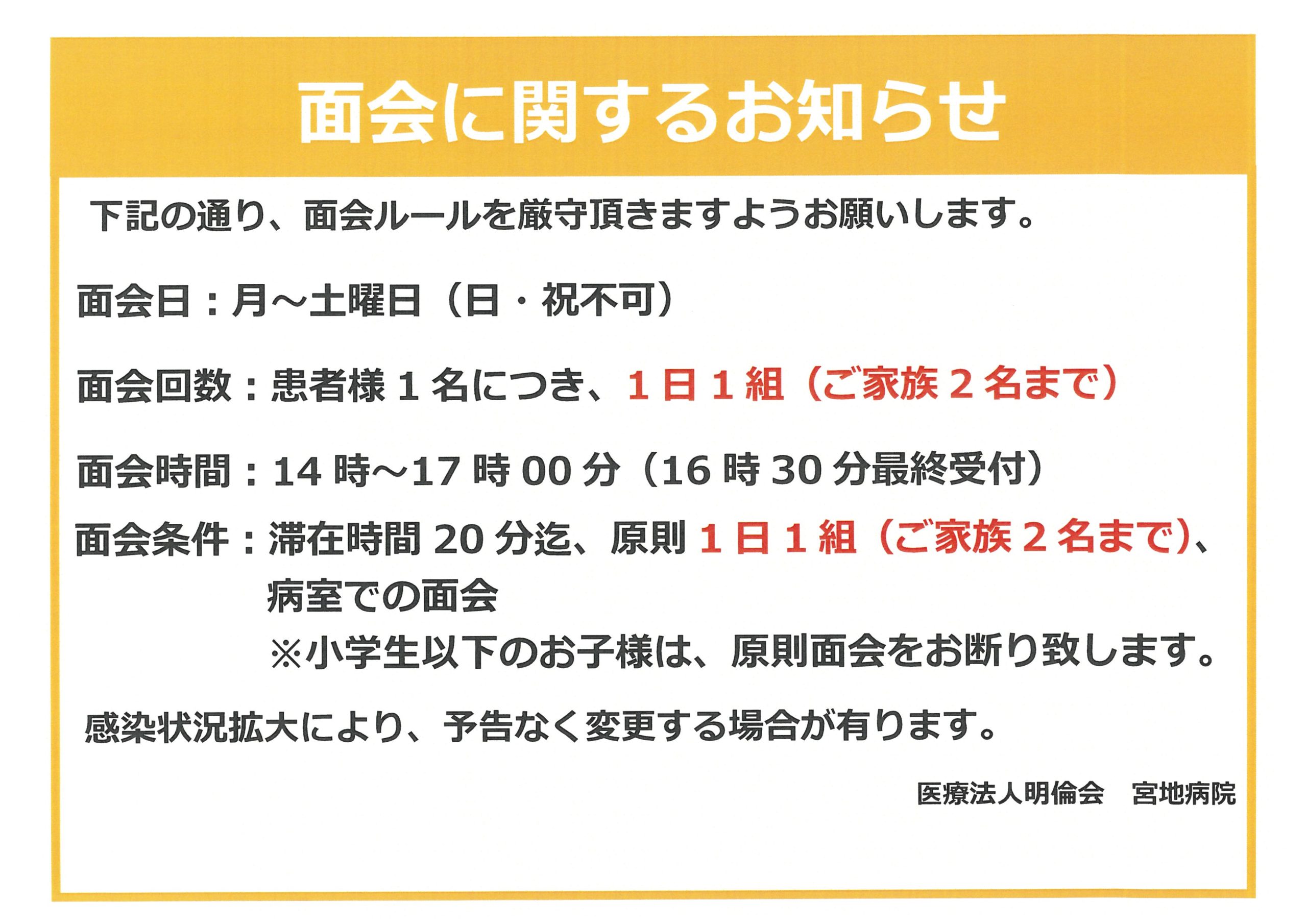 面会に関して、お子様の面会に制限を設けさせて頂いております。