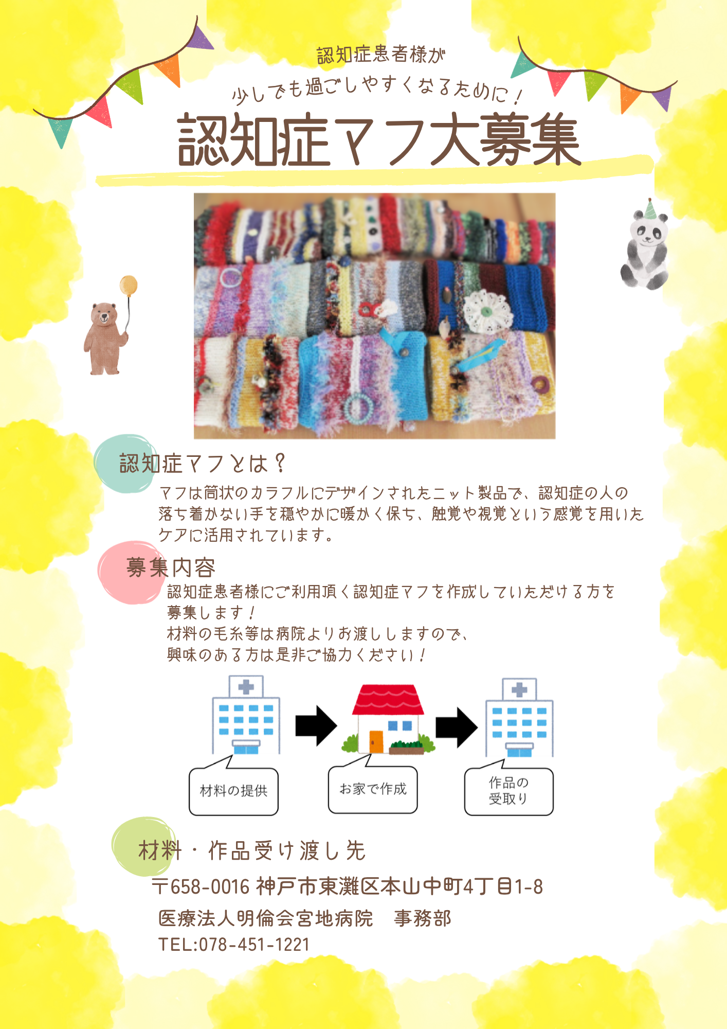 そこで、地域の皆様に認知症マフを大募集します!