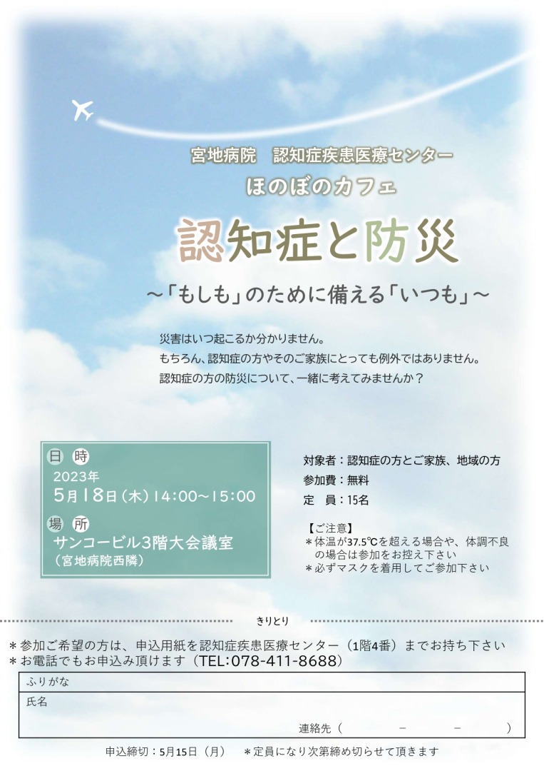 宮地病院 認知症疾患医療センターでは5月18日に「ほのぼのカフェ」を開催いたします。