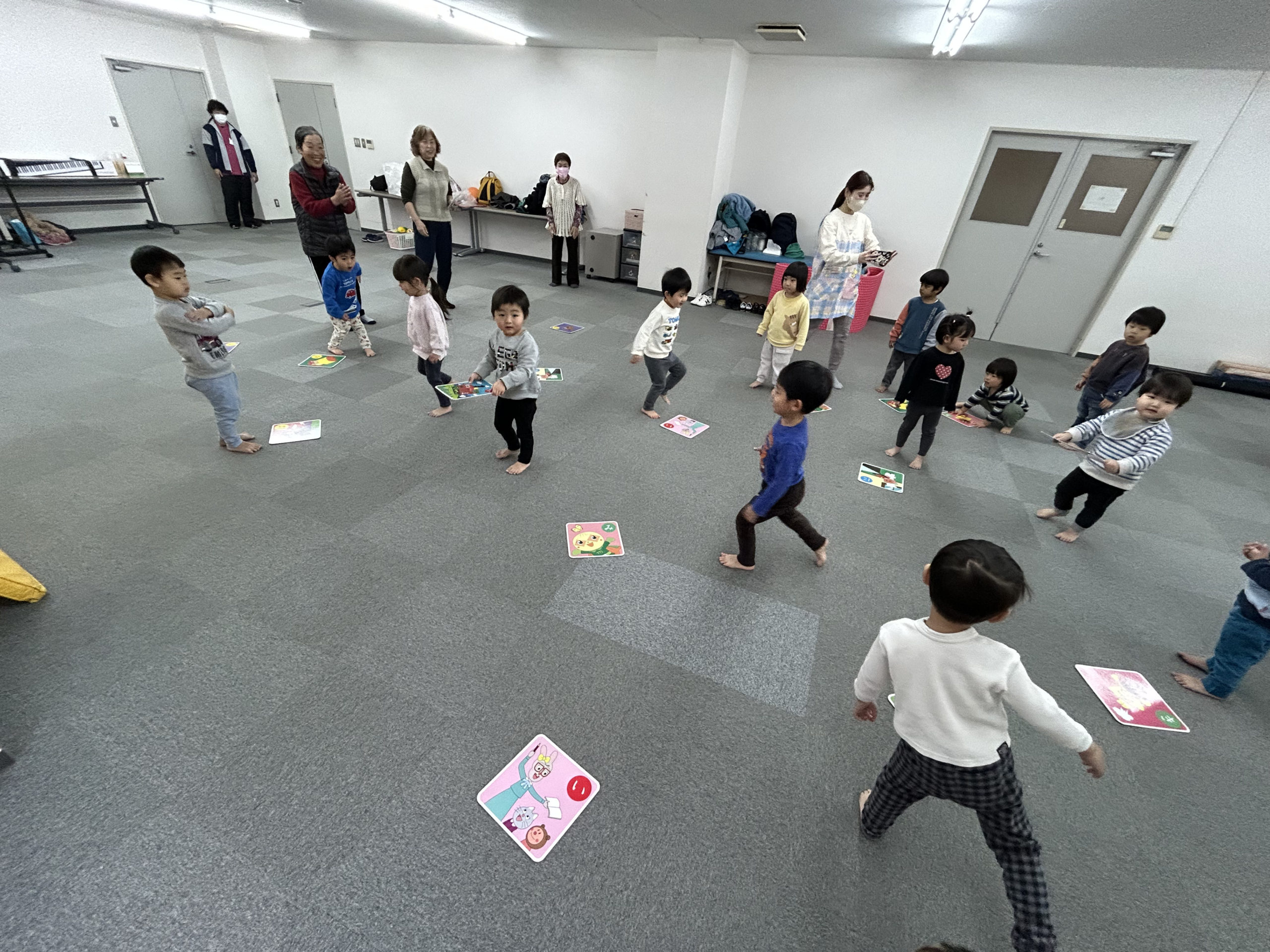 新年最初のおれんじたっちは、サンコービル3Fにてボール置き競争やカルタを行いました🎍少し離れたところに参加者が用意した人数分の容器を準備し、2チームに分かれてその容器にボールを置きに行きます🚩元気に容器へ駆け寄り、慎重にボールを容器に乗せて戻ってきていました☺アンパンマンカルタでは、参加者が読み上げる言葉を聞いて、一生懸命カードを探す子ども達。カードを取れると満面の笑みで喜び、その顔を見た参加者も自然と一緒に笑顔になっていました☀