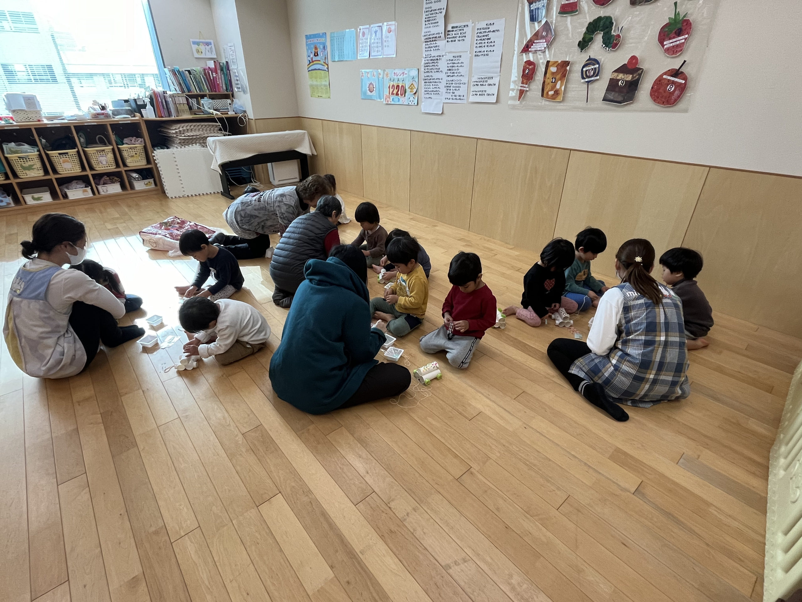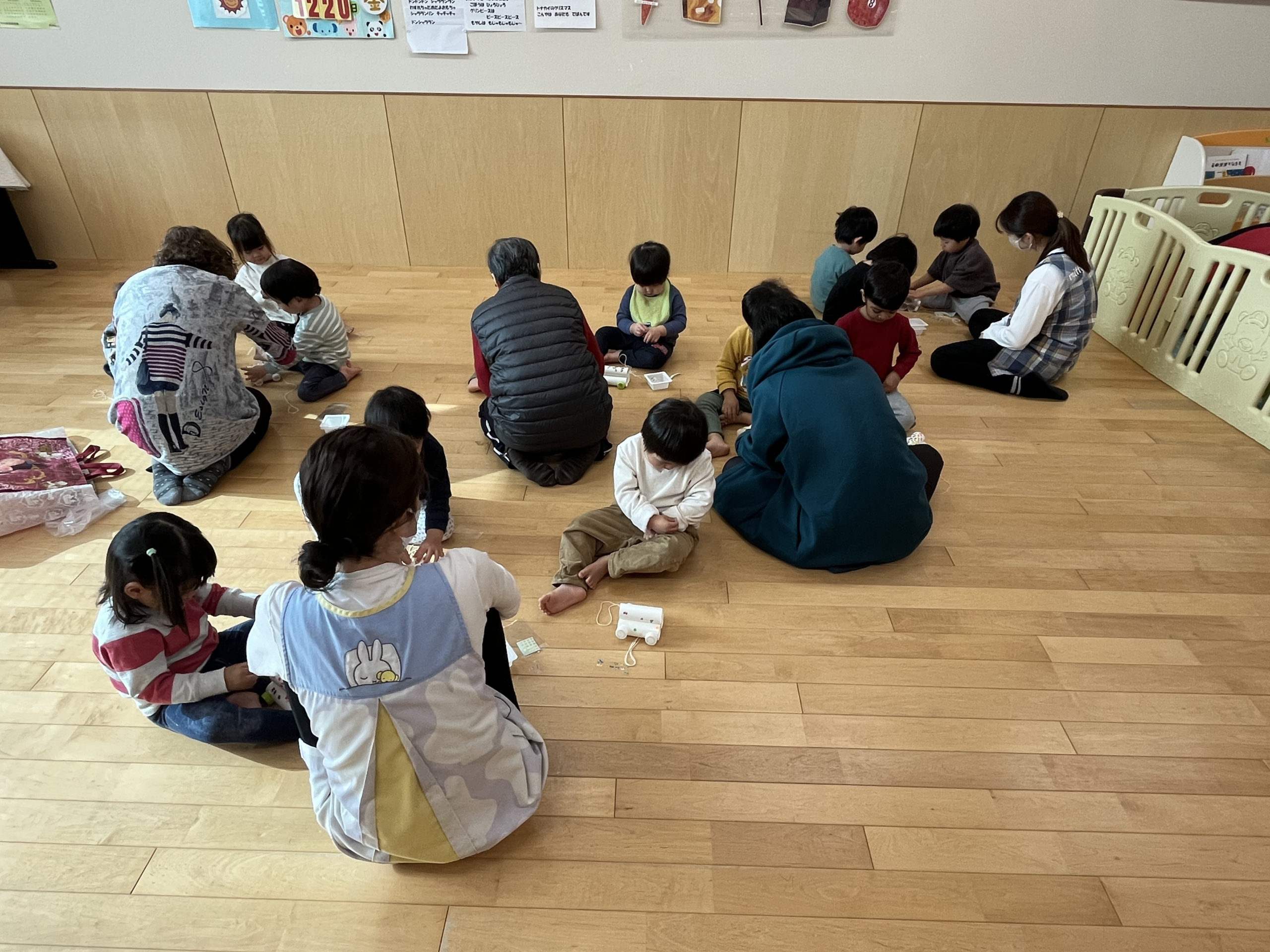 今回のおれんじたっちは、キッズクラブ本山南にて制作活動を行いました🌟事前に参加者がトイレットペーパーの芯とペットボトルのキャップを使って車を作り、それに一人ひとり好きなようにシールを貼って、自分だけの車を作りました🚙その車を引っ張って2人ずつ競争!🚩ゴールしたら、クリスマス前なので参加者からおやつをプレゼント🎁嬉しそうにおやつや車を手に持つ子どもたちを見て、参加者も自然とにっこり😊今年も楽しい活動になりました。来年もお楽しみに🎍