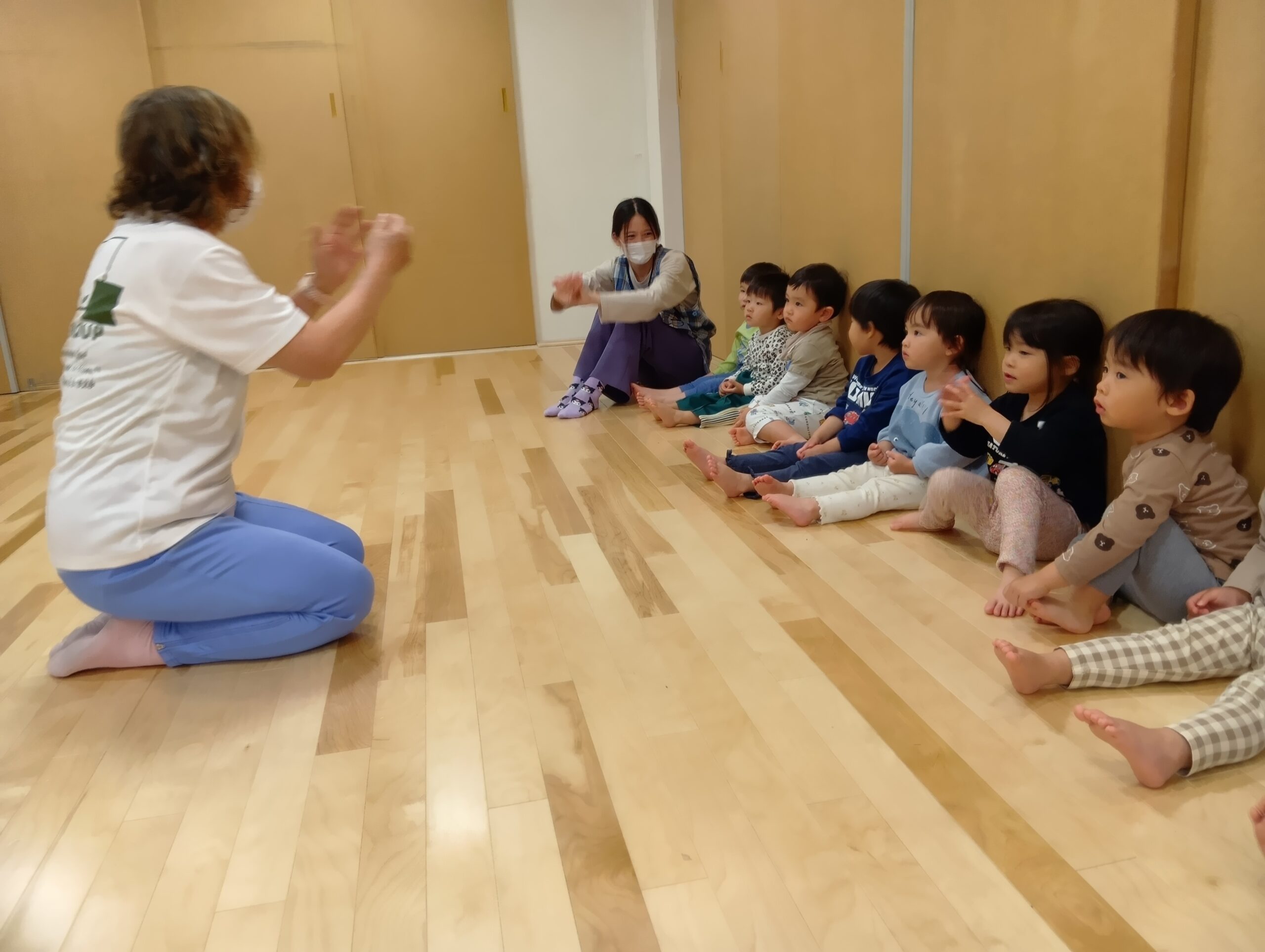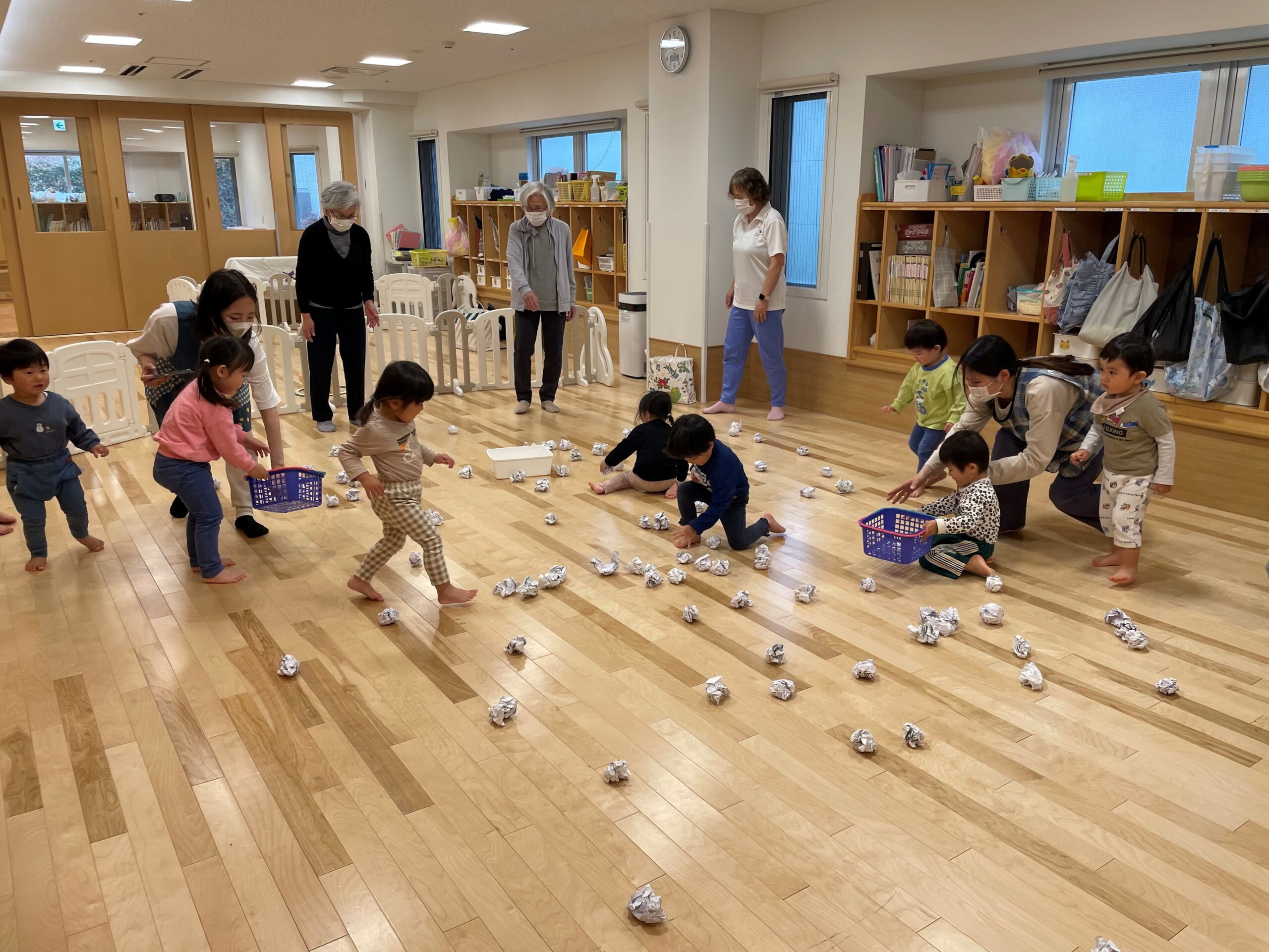本年度初めてのおれんじたっち、初めての参加者さんとそろって保育園を訪れました。年度上がってすぐだったので、緊張気味の子どもたちでしたが、元気よく「ちょうちょ」を歌ってくれました🦋そのあとは子どもたちに大人気のリズム遊び♪今回も参加者さんがリズムや歌を口ずさみ、子どもたちは元気よく身体を動かしながら楽しんでいました☺その後は、いらない紙をぐしゃぐしゃに丸め、紙玉をたくさん作りました!そして、その紙玉を投げて遊びました🌟投げた後は、参加者さんがフロア中に紙玉をばら撒き、それをみんなで紙袋に集めました🛍
