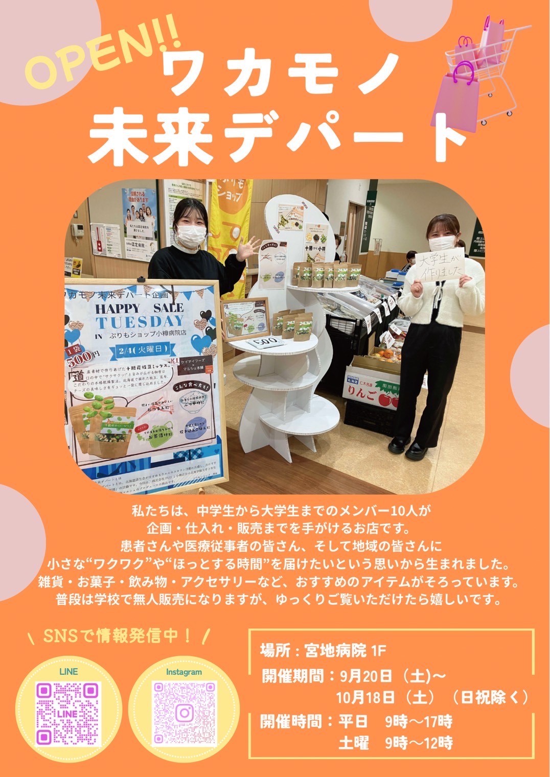 宮地病院の旧売店跡地に、期間限定でワカモノ未来デパートがオープンします!