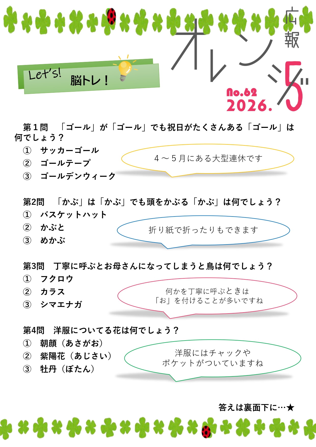 宮地病院 認知症疾患医療センターでは、広報紙として、オレンジを毎月発行しています。